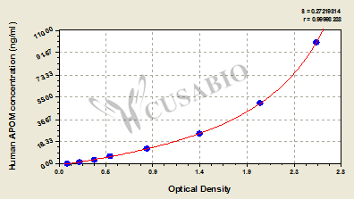 To assess the linearity of the assay, samples were spiked with high concentrations of human APOM in various matrices and diluted with the Sample Diluent to produce samples with values within the dynamic range of the assay. |