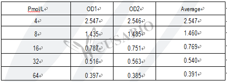 檢測(cè)范圍:4 pmol/L-64 pmol/L