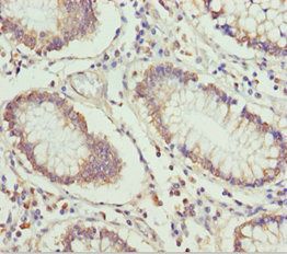 Immunohistochemistry of paraffin-embedded human colon cancer using CSB-PA007844ESR1HU at dilution of 1:100