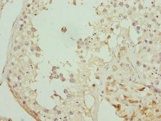 Immunohistochemistry of paraffin-embedded human testis tissue using CSB-PA623012ESR2HU at dilution of 1:100