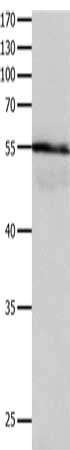 Gel: 10%SDS-PAGE, Lysate: 30 μg, Lane: Human brain glioma tissue, Primary antibody: CSB-PA568452(HP Antibody) at dilution 1/400, Secondary antibody: Goat anti rabbit IgG at 1/8000 dilution, Exposure time: 5 seconds