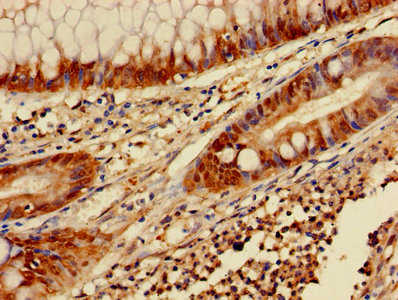 Immunohistochemistry of paraffin-embedded human colon cancer using CSB-PA012887YA01HU at dilution of 1:100