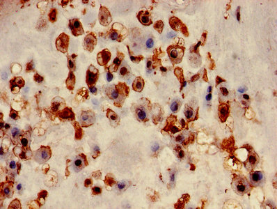 Immunohistochemistry of paraffin-embedded human placenta tissue using CSB-PA012887YA01HU at dilution of 1:100