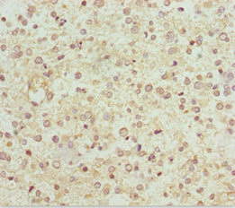 Immunohistochemistry of paraffin-embedded human glioma using CSB-PA015660DSR2HU at dilution of 1:100