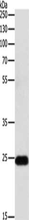 Gel: 10%SDS-PAGE, Lysate: 30 μg, Lane: Mouse lung tissue, Primary antibody: CSB-PA219431(RALB Antibody) at dilution 1/300, Secondary antibody: Goat anti rabbit IgG at 1/8000 dilution, Exposure time: 30 seconds