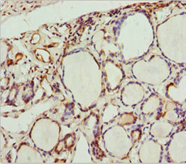 Immunohistochemistry of paraffin-embedded human thyroid tissue using CSB-PA856936ESR1HU at dilution of 1:100