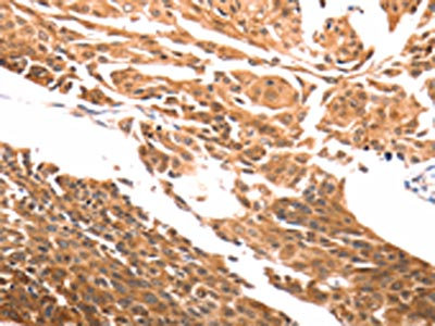 The image on the left is immunohistochemistry of paraffin-embedded Human cervical cancer tissue using CSB-PA559833(SLC39A6 Antibody) at dilution 1/30, on the right is treated with synthetic peptide. (Original magnification: ×200)