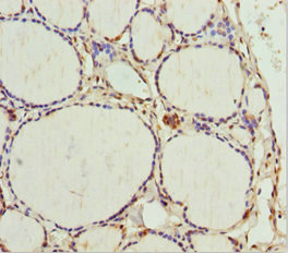 Immunohistochemistry of paraffin-embedded human thyroid tissue using CSB-PA619078ESR1HU at dilution of 1:100