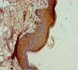 Immunohistochemistry of paraffin-embedded human skin tissue using CSB-PA619078ESR1HU at dilution of 1:100