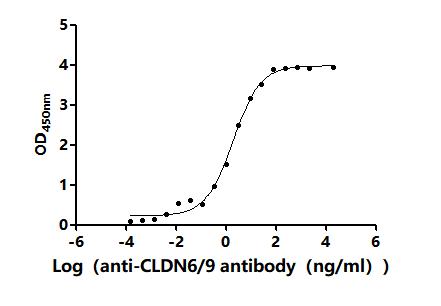 Activity: Measured by its binding ability in a functional ELISA. Immobilized Human CLDN6 (CSB-MP005508HU(A5)-D) at 2 μg/mL can bind Anti-CLDN6/9 recombinant antibody. The EC50 is 1.243-2.426 ng/mL. -