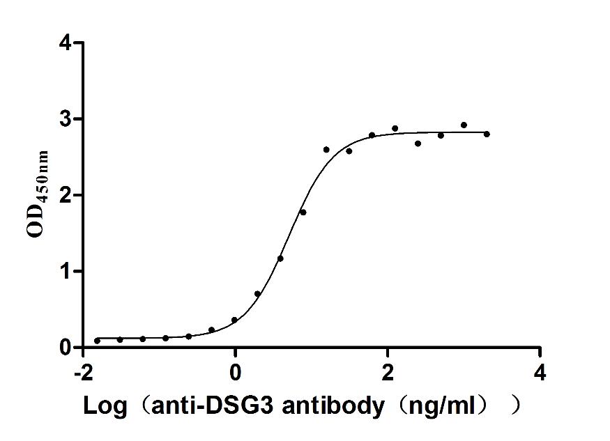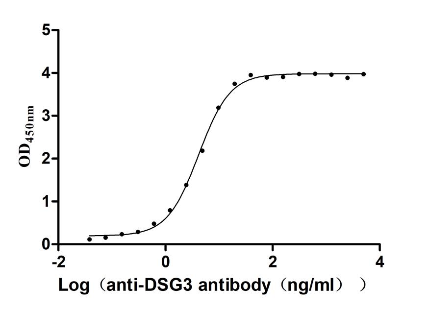 Activity: Measured by its binding ability in a functional ELISA. Immobilized Human DSG3 (CSB-BP007205HUc7) at 2 μg/mL can bind Anti-DSG3 recombinant antibody, the EC50 is 4.552-5.720 ng/mL. -