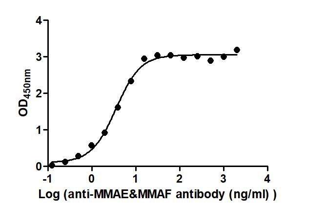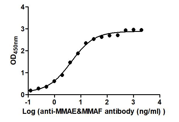 Activity: Measured by its binding ability in a functional ELISA. Immobilized Disitamab vedotin (Synonyms: RC48) and Depatuxizumab mafodotin (Synonyms: ABT-414) at 2 μg/mL can bind Anti-MMAE&MMAF antibody, the EC50 is 3.523 to 5.356 ng/mL and 3.022 to 4.198 ng/mL, respectively. -