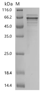 The DNA sequence containing the gene coding for 19-457aa of human chromogranin-A/CHGA was used to express recombinant CHGA protein in E.coli cells. The recombinant CHGA protein was fused with a 6xHis-tag at the N-terminus for purification. According to the SDS-PAGE analysis, a molecular mass band of about 51-65 kDa of the CHGA protein was visualized on the gel. The purity of this CHGA protein is greater than 90%. Apart from being as an immunogen for antibody generation, this recombinant protein also may be used in the CHGA-associated cancer studies.