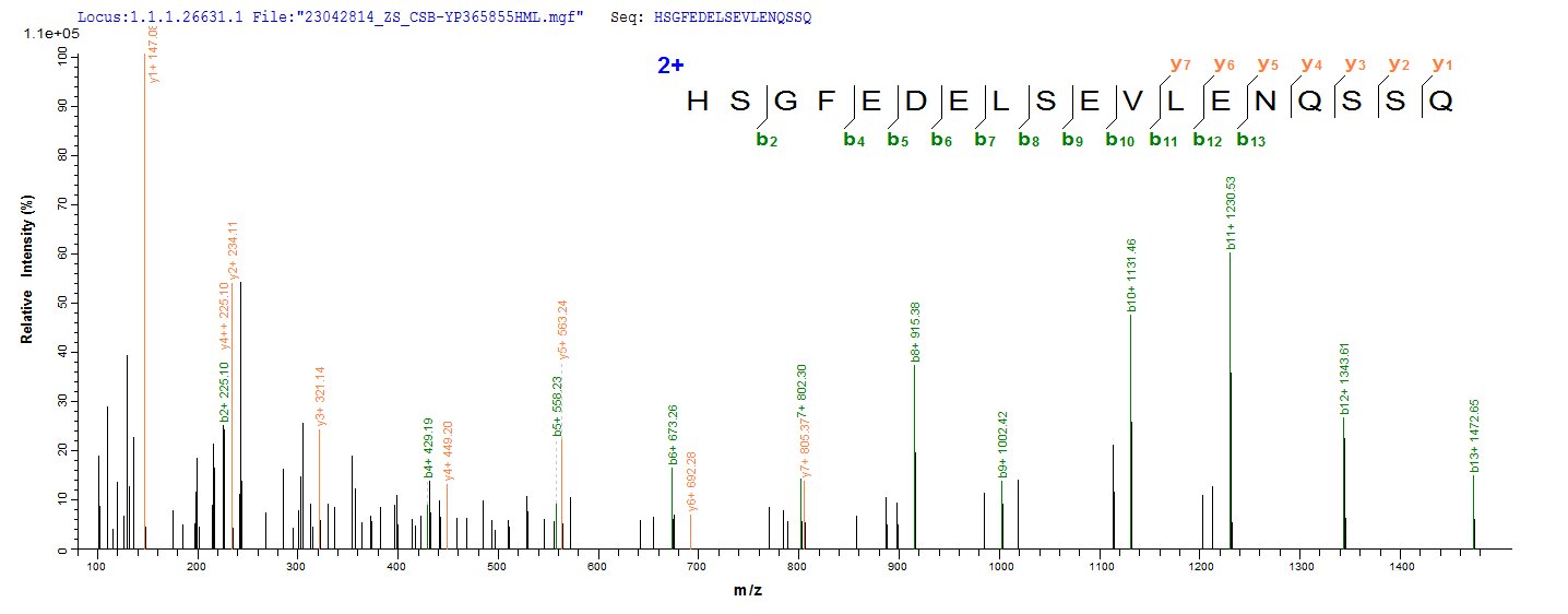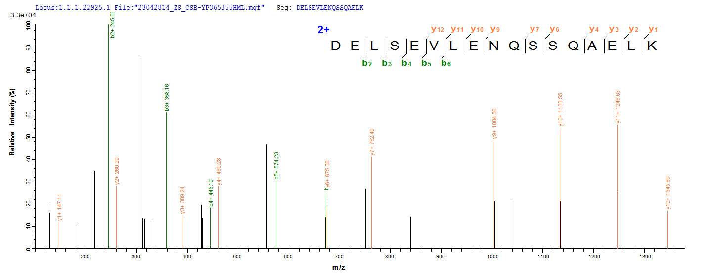 Based on the SEQUEST from database of Mammalian Cell host and target protein, the LC-MS/MS Analysis result of CSB-YP005344HU could indicate that this peptide derived from Yeast-expressed Homo sapiens (Human) CHGA.