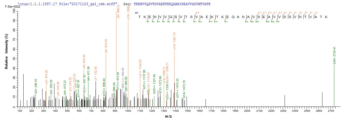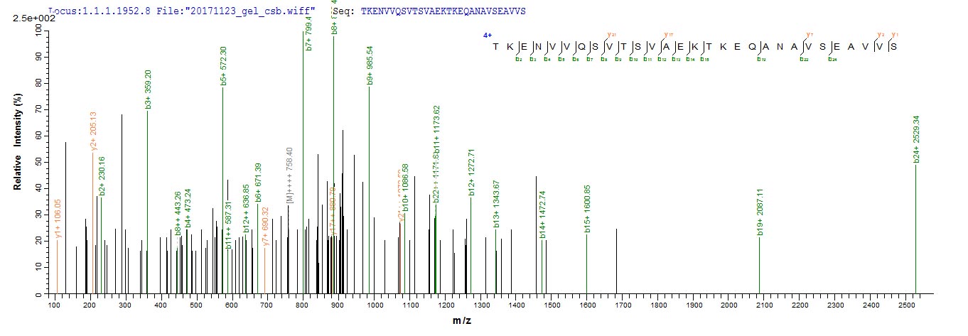 Based on the SEQUEST from database of E.coli host and target protein, the LC-MS/MS Analysis result of CSB-EP021915HU could indicate that this peptide derived from E.coli-expressed Homo sapiens (Human) SNCG.