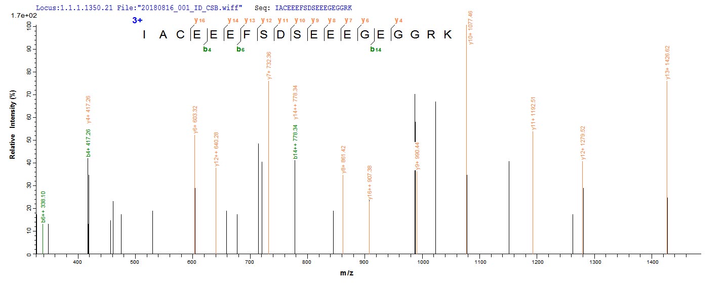 Based on the SEQUEST from database of E.coli host and target protein, the LC-MS/MS Analysis result of CSB-EP010235HU could indicate that this peptide derived from E.coli-expressed Homo sapiens (Human) HDAC1.