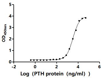 Measured by its binding ability in a functional ELISA.Immobilized Human PTH1R(CSB-MP018988HU) at 5 μg/ml can bind Human PTH. The EC50 is 3.156-3.564 μg/ml. Biological Activity Assay