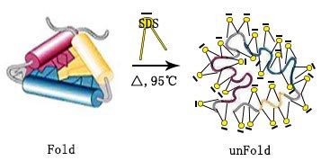 SDS:陰離子表面活性劑,具有很強(qiáng)的破壞力,基本上可以溶解所有蛋白質(zhì),并破壞其天然構(gòu)象結(jié)構(gòu)。SDS與蛋白質(zhì)的結(jié)合比例為1.4:1,可以有效覆蓋蛋白質(zhì)本身的電荷。SDS的臨界膠束溫度稍高,因此在低溫下可能出現(xiàn)沉淀,并且在存在鉀鹽的情況下沉淀會(huì)更明顯。此外,溶液的離子強(qiáng)度越強(qiáng),離子性表面活性劑的臨界膠束濃度越低,使蛋白質(zhì)更易溶解。