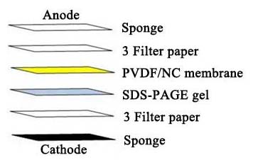 c. 根據(jù)制造商的說(shuō)明書(shū)組裝轉(zhuǎn)印裝置。將蛋白質(zhì)轉(zhuǎn)移到硝酸纖維素或PVDF膜上。對(duì)于分子量低于20 kDa的蛋白質(zhì),推薦使用0.22 μm的膜。