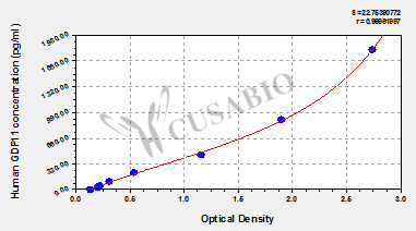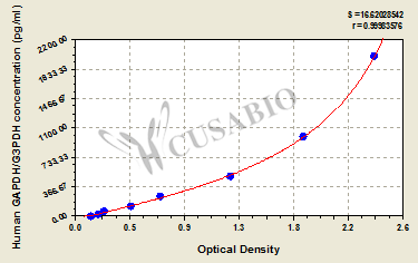 通過線性范圍來計算出實際的檢測樣本值,定量試劑盒標準曲線的相關系數R大于0.99。以CSB-E07270h(人脂聯素(ADP)ELISA Kit)為例的標準曲線。