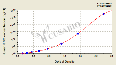 通過(guò)線(xiàn)性范圍來(lái)計(jì)算出實(shí)際的檢測(cè)樣本值,定量試劑盒標(biāo)準(zhǔn)曲線(xiàn)的相關(guān)系數(shù)R大于0.99。以CSB-E07270h(人脂聯(lián)素(ADP)ELISA Kit)為例的標(biāo)準(zhǔn)曲線(xiàn)。