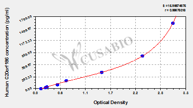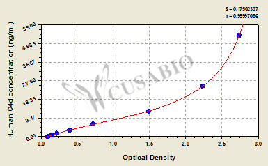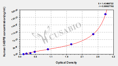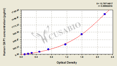 通過線性范圍來計算出實際的檢測樣本值,定量試劑盒標準曲線的相關系數R大于0.99。以CSB-E07270h(人脂聯素(ADP)ELISA Kit)為例的標準曲線。