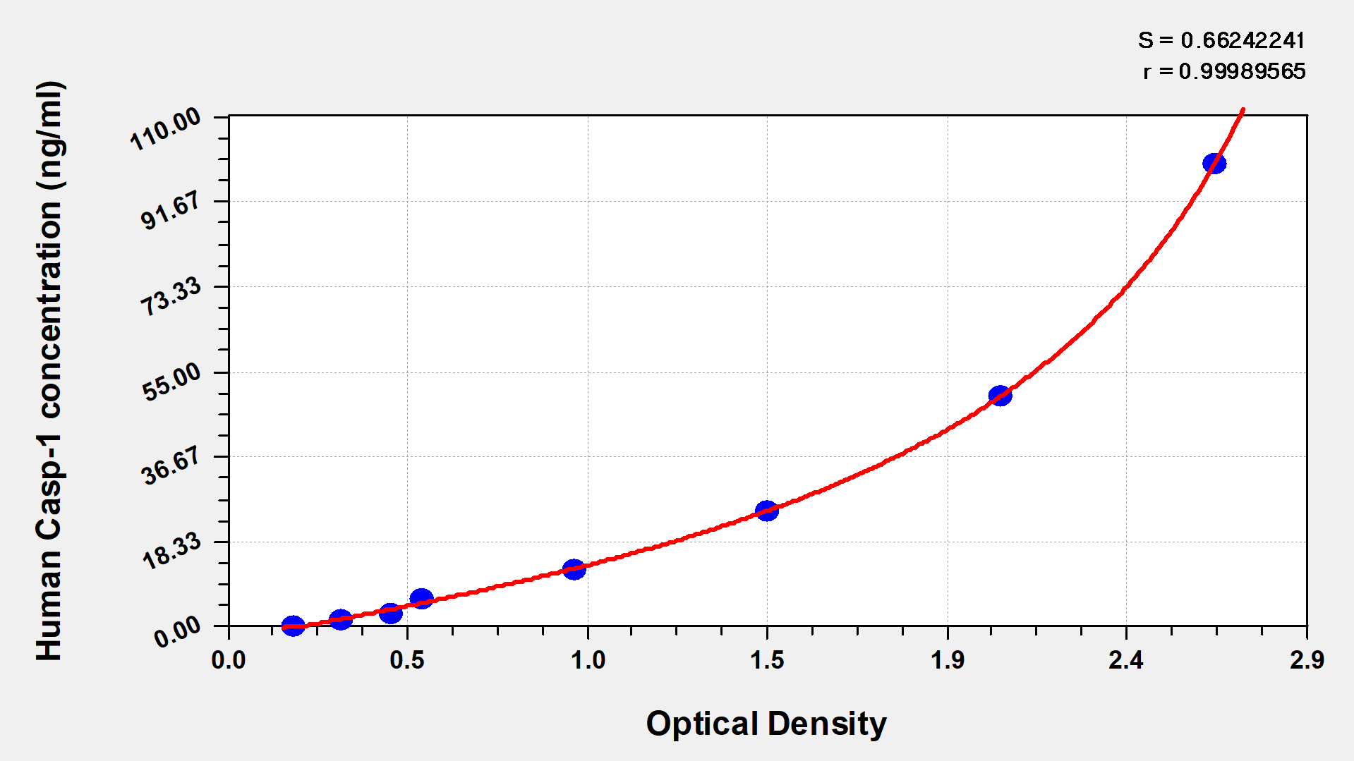 最低檢測限是靈敏度的測試指標。由使用的抗體效價等決定的,在研發過程中,一般會優化保證高靈敏度、低背景的檢測結果從而大大提高試劑盒的靈敏度。檢測限越低,靈敏度越高。通過將零標準重復獲得的平均 O.D. 加上3個標準偏差來確定靈敏度。