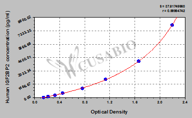 通過線性范圍來計算出實際的檢測樣本值,定量試劑盒標準曲線的相關系數R大于0.99。以CSB-E07270h(人脂聯素(ADP)ELISA Kit)為例的標準曲線。