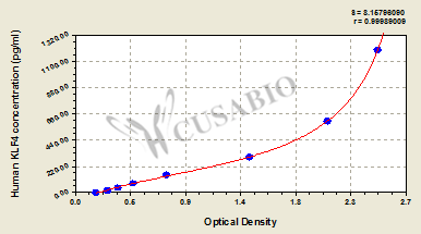 通過線性范圍來計算出實際的檢測樣本值,定量試劑盒標準曲線的相關系數R大于0.99。以CSB-E07270h(人脂聯素(ADP)ELISA Kit)為例的標準曲線。