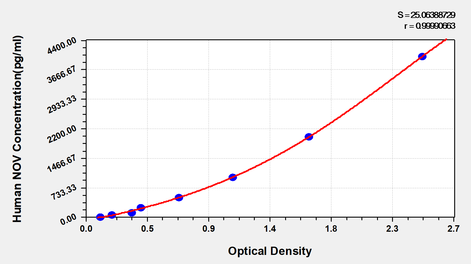 通過線性范圍來計算出實際的檢測樣本值,定量試劑盒標準曲線的相關系數R大于0.99。以CSB-E07270h(人脂聯素(ADP)ELISA Kit)為例的標準曲線。