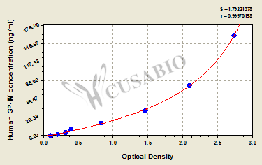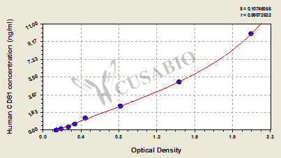 通過(guò)線性范圍來(lái)計(jì)算出實(shí)際的檢測(cè)樣本值,定量試劑盒標(biāo)準(zhǔn)曲線的相關(guān)系數(shù)R大于0.99。以CSB-E07270h(人脂聯(lián)素(ADP)ELISA Kit)為例的標(biāo)準(zhǔn)曲線。