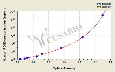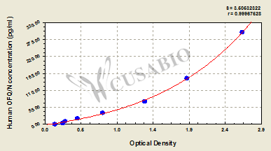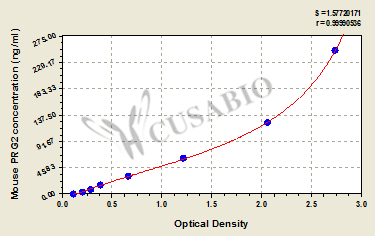 通過線性范圍來計算出實際的檢測樣本值,定量試劑盒標準曲線的相關系數R大于0.99。以CSB-E07270h(人脂聯素(ADP)ELISA Kit)為例的標準曲線。