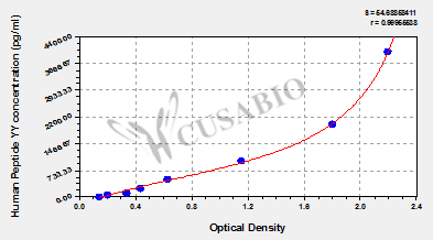 通過線性范圍來計算出實際的檢測樣本值,定量試劑盒標準曲線的相關系數R大于0.99。以CSB-E07270h(人脂聯素(ADP)ELISA Kit)為例的標準曲線。