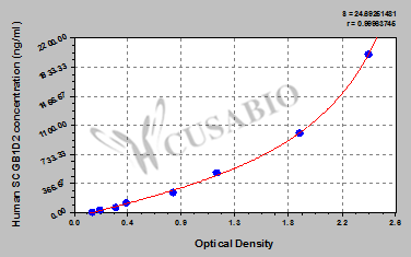通過線性范圍來計算出實際的檢測樣本值,定量試劑盒標準曲線的相關系數R大于0.99。以CSB-E07270h(人脂聯素(ADP)ELISA Kit)為例的標準曲線。