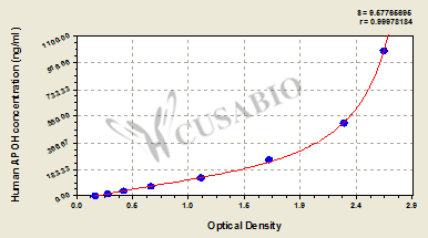 通過線性范圍來計算出實際的檢測樣本值,定量試劑盒標準曲線的相關系數R大于0.99。以CSB-E07270h(人脂聯素(ADP)ELISA Kit)為例的標準曲線。