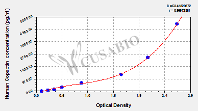 通過線性范圍來計算出實際的檢測樣本值,定量試劑盒標準曲線的相關系數R大于0.99。以CSB-E07270h(人脂聯素(ADP)ELISA Kit)為例的標準曲線。