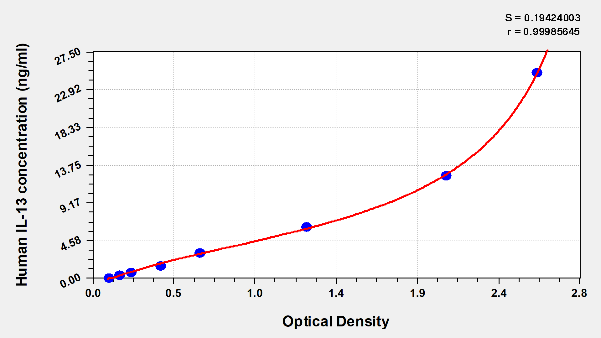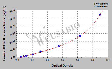 通過(guò)線性范圍來(lái)計(jì)算出實(shí)際的檢測(cè)樣本值,定量試劑盒標(biāo)準(zhǔn)曲線的相關(guān)系數(shù)R大于0.99。以CSB-E07270h(人脂聯(lián)素(ADP)ELISA Kit)為例的標(biāo)準(zhǔn)曲線。