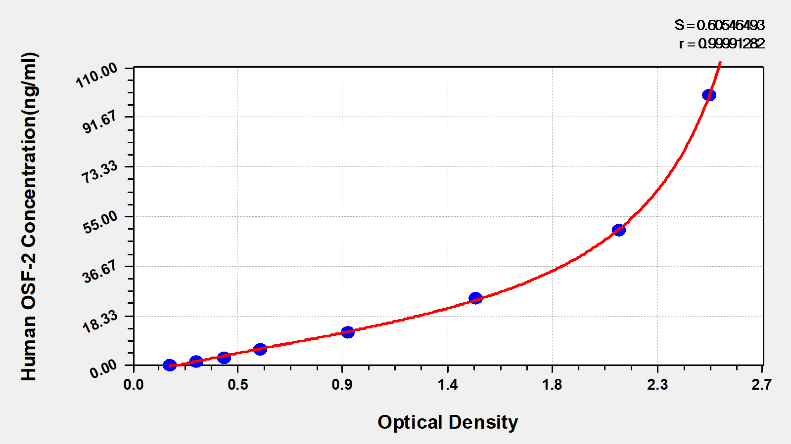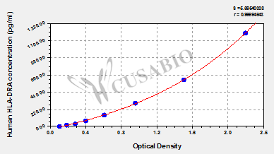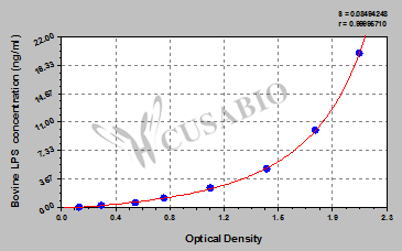 通過線性范圍來計算出實際的檢測樣本值,定量試劑盒標準曲線的相關系數R大于0.99。以CSB-E07270h(人脂聯素(ADP)ELISA Kit)為例的標準曲線。