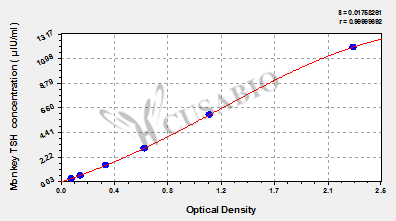 最低檢測限是靈敏度的測試指標。由使用的抗體效價等決定的,在研發(fā)過程中,一般會優(yōu)化保證高靈敏度、低背景的檢測結果從而大大提高試劑盒的靈敏度。檢測限越低,靈敏度越高。通過將零標準重復獲得的平均 O.D. 加上3個標準偏差來確定靈敏度。