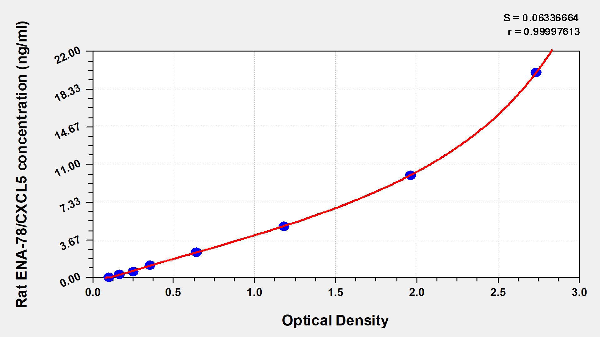 通過線性范圍來計算出實際的檢測樣本值,定量試劑盒標(biāo)準(zhǔn)曲線的相關(guān)系數(shù)R大于0.99。以CSB-E07270h(人脂聯(lián)素(ADP)ELISA Kit)為例的標(biāo)準(zhǔn)曲線。