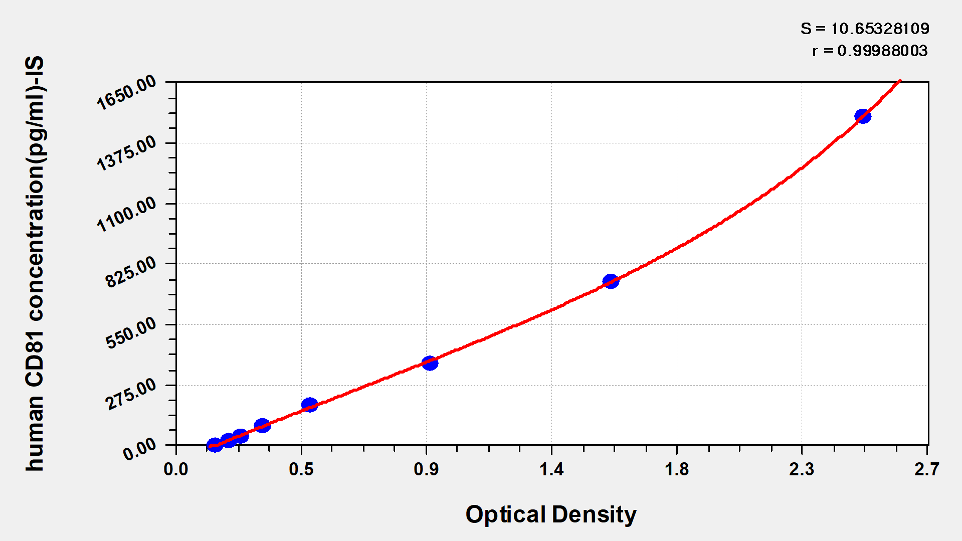 通過線性范圍來計算出實際的檢測樣本值,定量試劑盒標(biāo)準(zhǔn)曲線的相關(guān)系數(shù)R大于0.99。以CSB-E07270h(人脂聯(lián)素(ADP)ELISA Kit)為例的標(biāo)準(zhǔn)曲線。