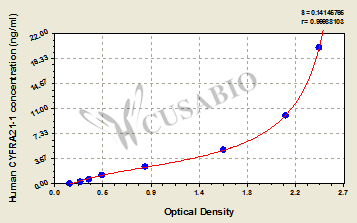 通過線性范圍來計算出實際的檢測樣本值,定量試劑盒標準曲線的相關系數R大于0.99。以CSB-E07270h(人脂聯素(ADP)ELISA Kit)為例的標準曲線。