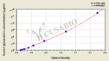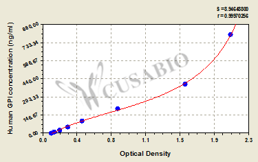 通過線性范圍來計算出實際的檢測樣本值,定量試劑盒標準曲線的相關系數R大于0.99。以CSB-E07270h(人脂聯素(ADP)ELISA Kit)為例的標準曲線。