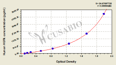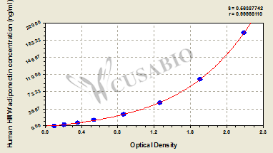 通過線性范圍來計算出實際的檢測樣本值,定量試劑盒標準曲線的相關系數R大于0.99。以CSB-E07270h(人脂聯素(ADP)ELISA Kit)為例的標準曲線。