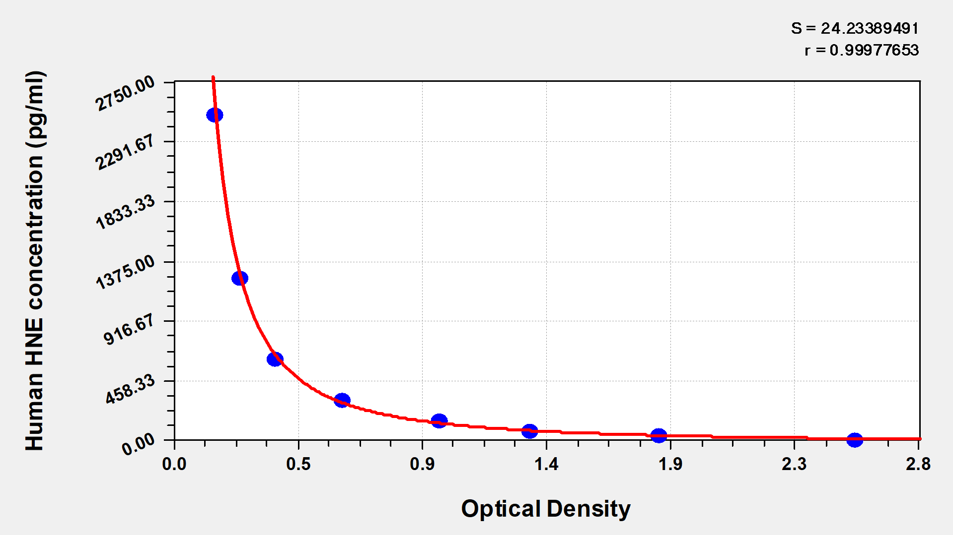 最低檢測限是靈敏度的測試指標。由使用的抗體效價等決定的,在研發過程中,一般會優化保證高靈敏度、低背景的檢測結果從而大大提高試劑盒的靈敏度。檢測限越低,靈敏度越高。通過將零標準重復獲得的平均 O.D. 加上3個標準偏差來確定靈敏度。