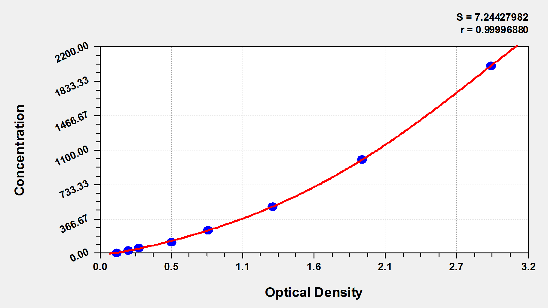 通過線性范圍來計算出實際的檢測樣本值,定量試劑盒標準曲線的相關系數R大于0.99。以CSB-E07270h(人脂聯素(ADP)ELISA Kit)為例的標準曲線。