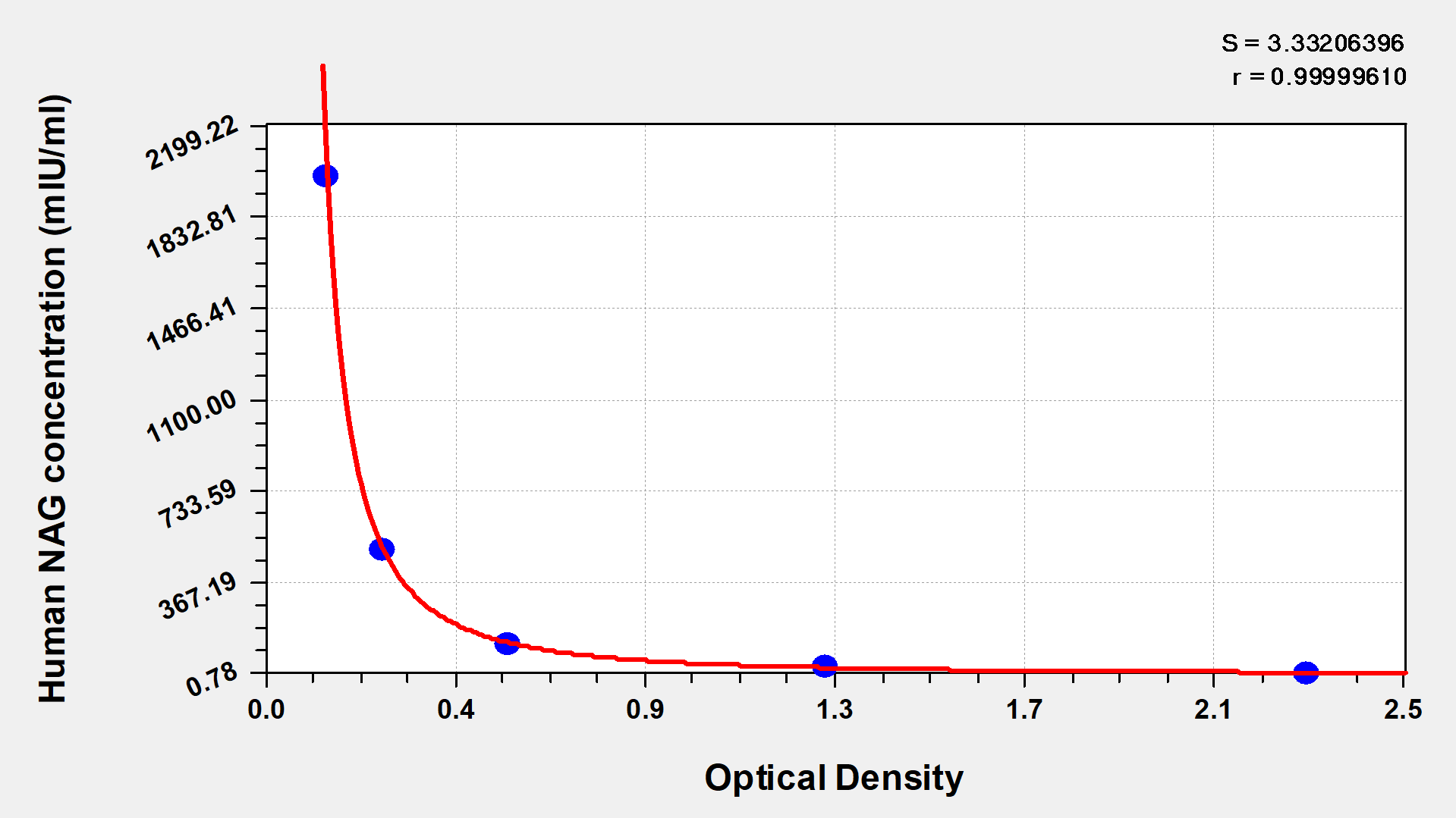 通過線性范圍來計算出實際的檢測樣本值,定量試劑盒標準曲線的相關系數R大于0.99。以CSB-E07270h(人脂聯素(ADP)ELISA Kit)為例的標準曲線。