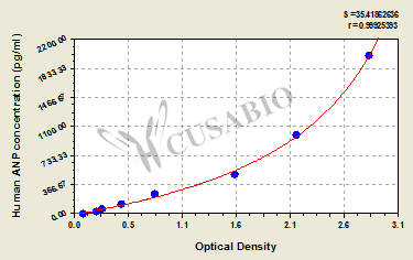 通過線性范圍來計算出實際的檢測樣本值,定量試劑盒標準曲線的相關系數R大于0.99。以CSB-E07270h(人脂聯素(ADP)ELISA Kit)為例的標準曲線。