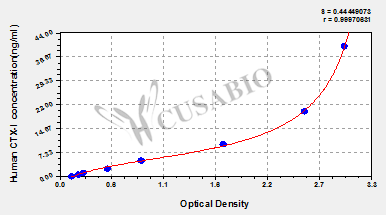 通過線性范圍來計算出實際的檢測樣本值,定量試劑盒標準曲線的相關系數R大于0.99。以CSB-E07270h(人脂聯素(ADP)ELISA Kit)為例的標準曲線。
