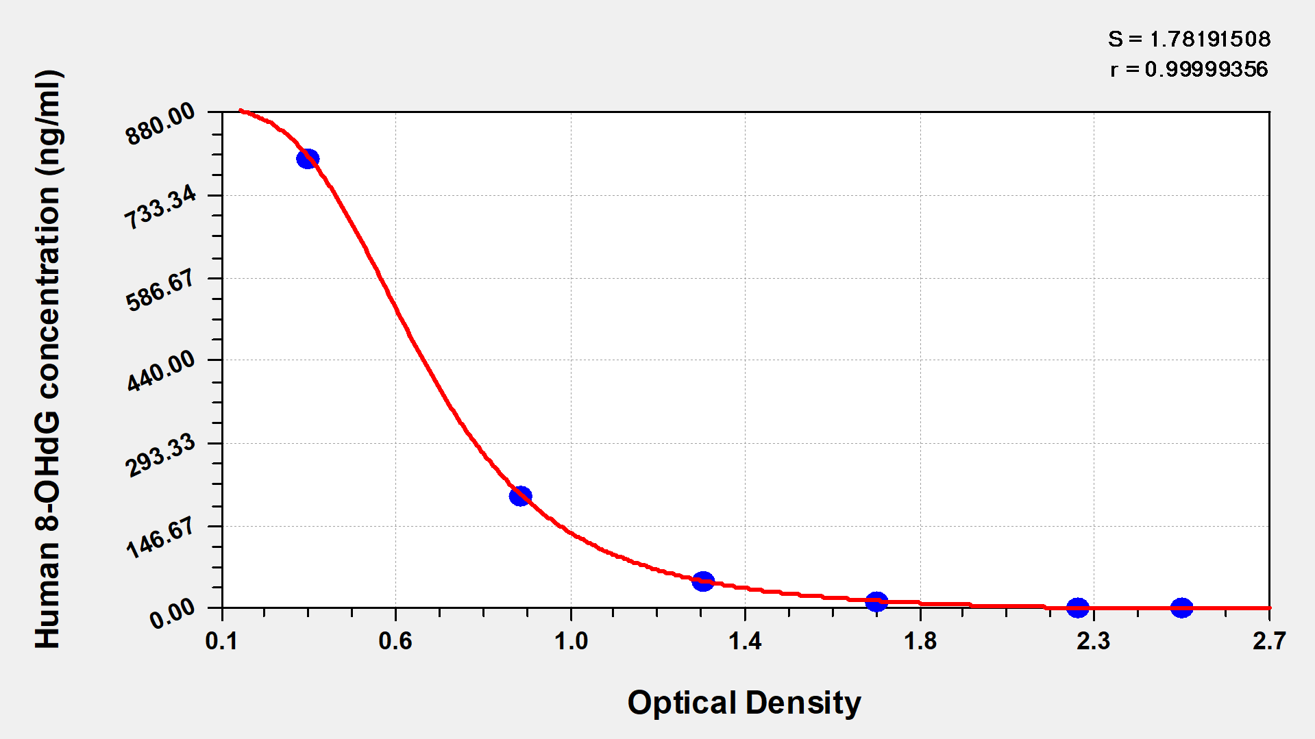 最低檢測限是靈敏度的測試指標。由使用的抗體效價等決定的,在研發過程中,一般會優化保證高靈敏度、低背景的檢測結果從而大大提高試劑盒的靈敏度。檢測限越低,靈敏度越高。通過將零標準重復獲得的平均 O.D. 加上3個標準偏差來確定靈敏度。